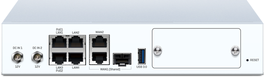 WAN interfaces: 2 x 10/100/1000 Base-TX (WAN1 shared port with SFP)